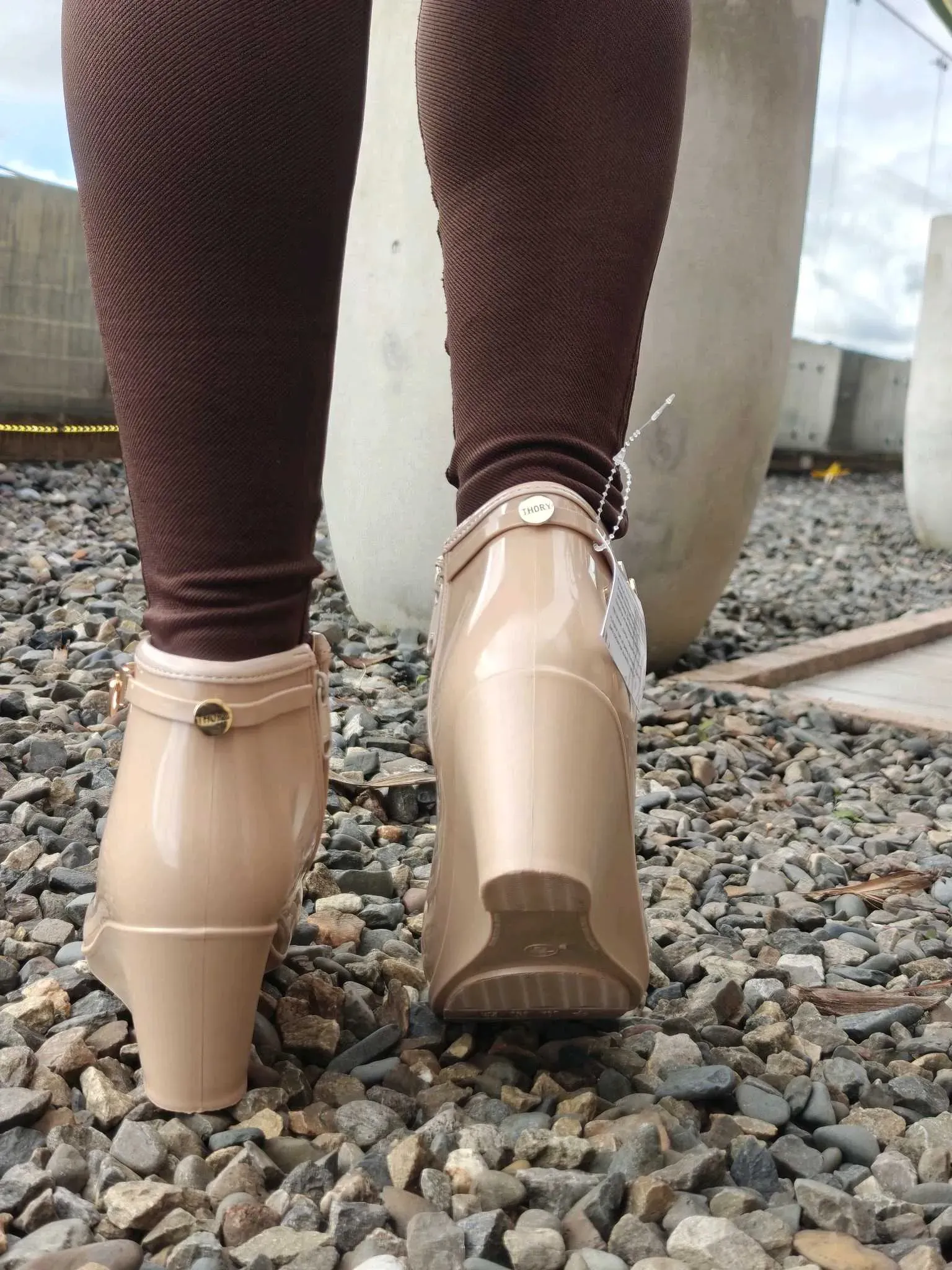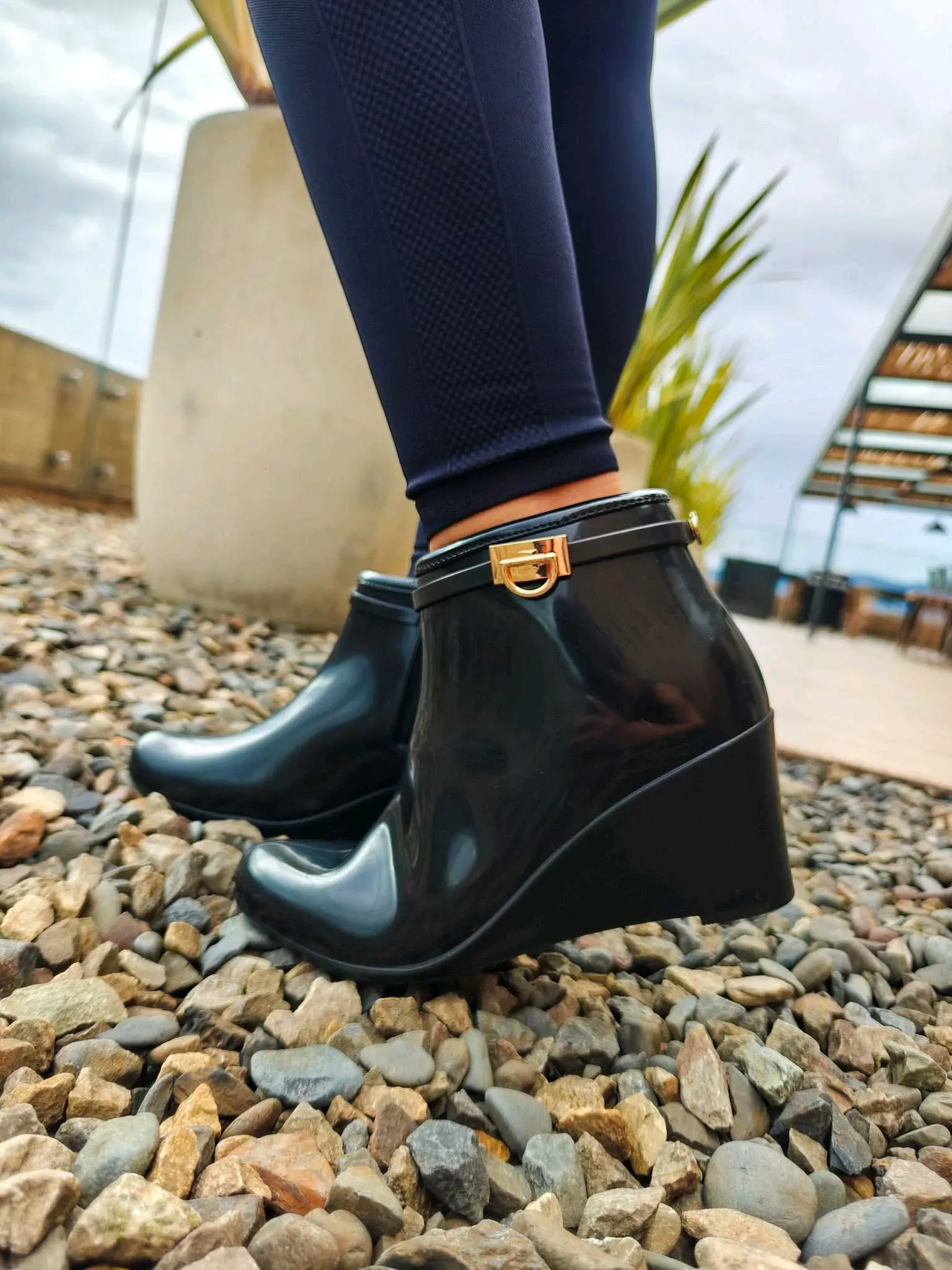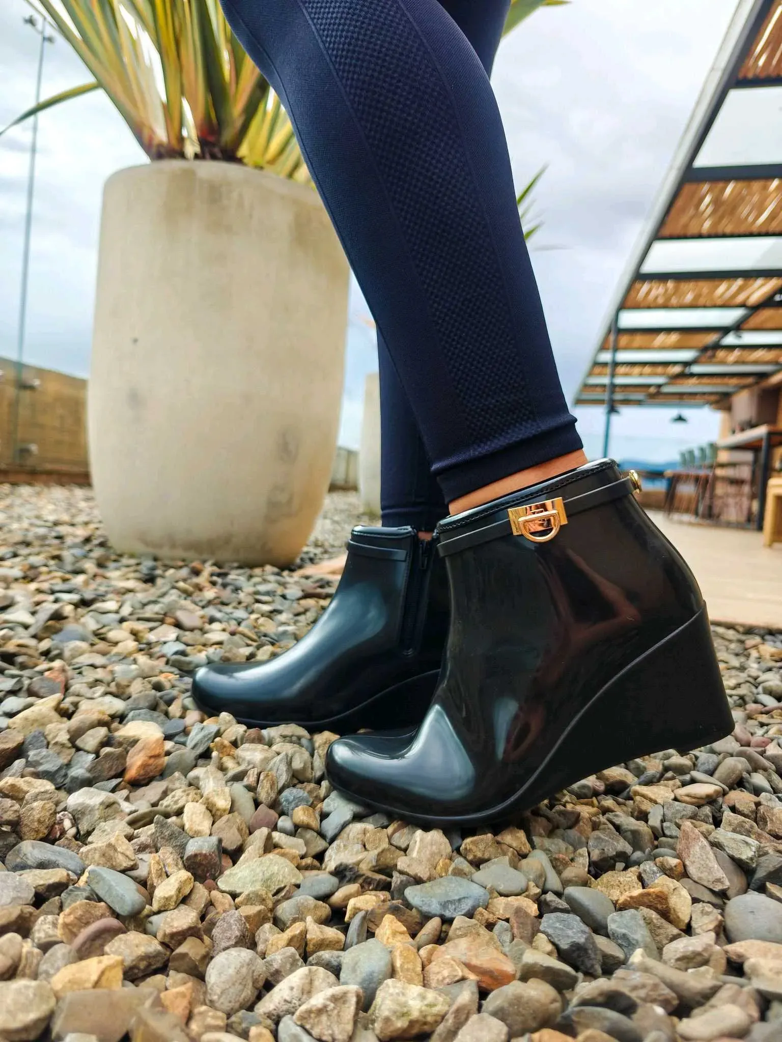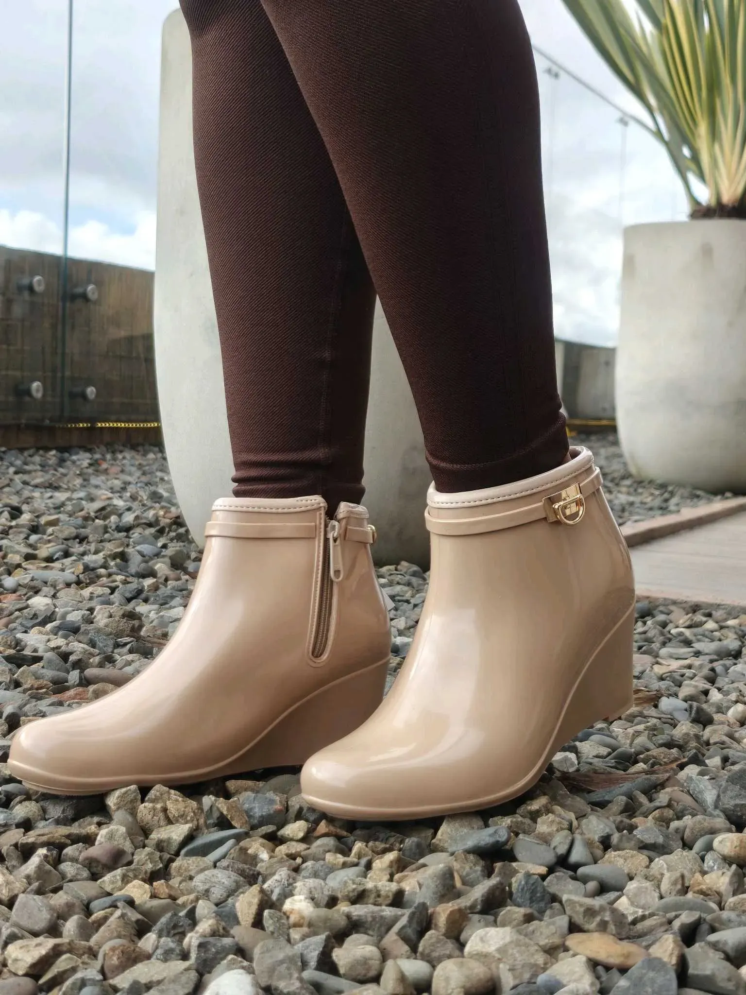 Botin totalmente impermeable, con cremallera para mejor ajuste y plataforma para mayor confort.
