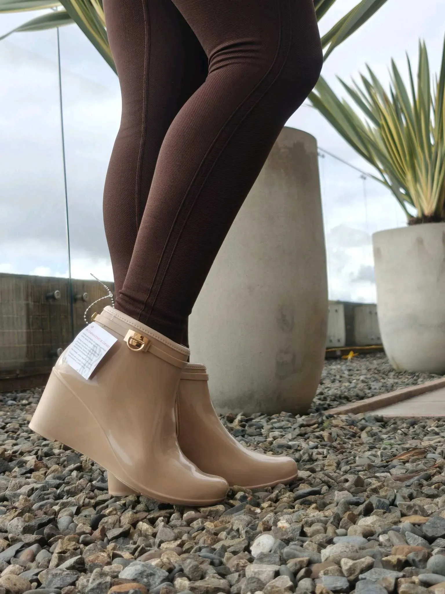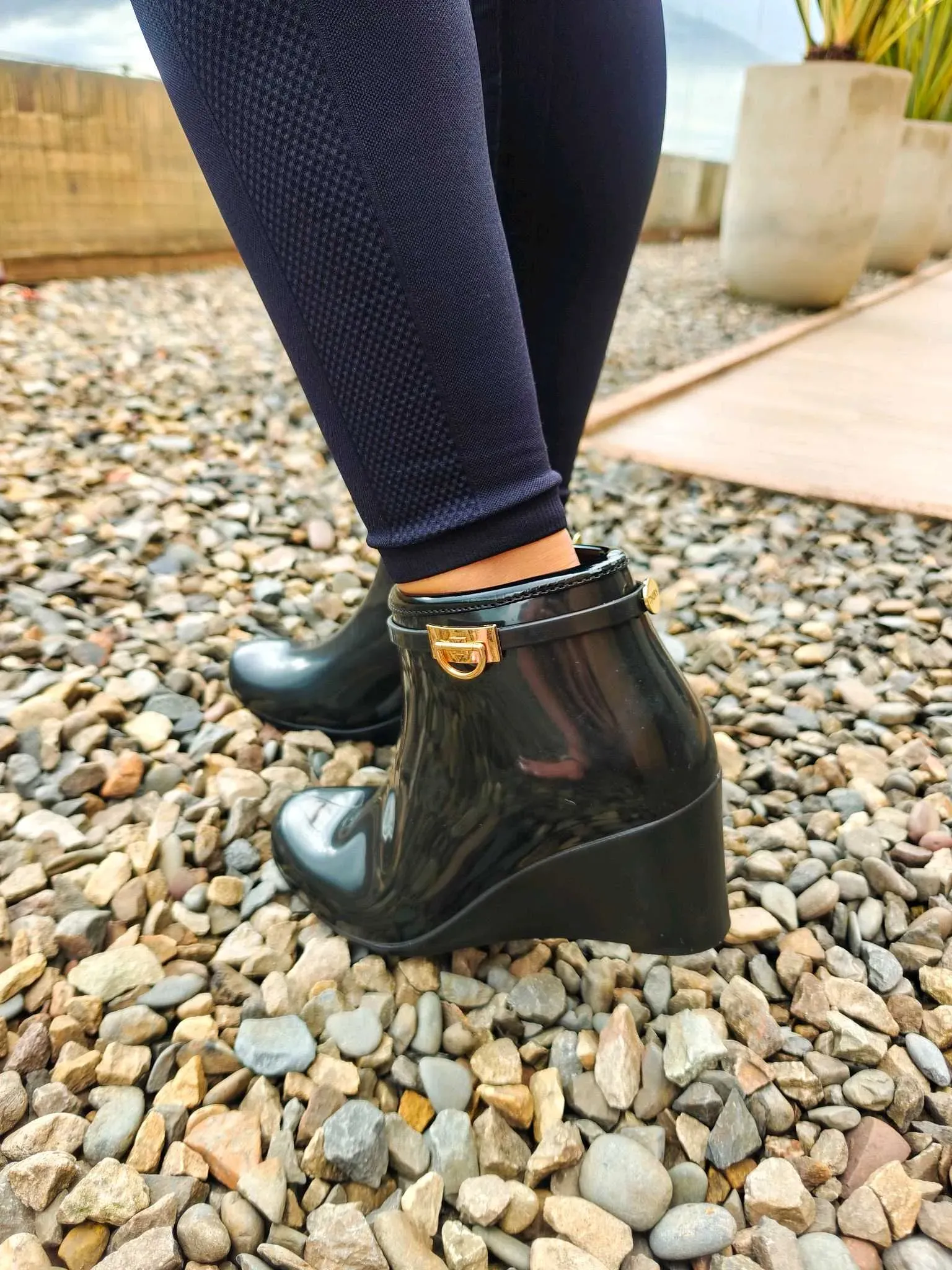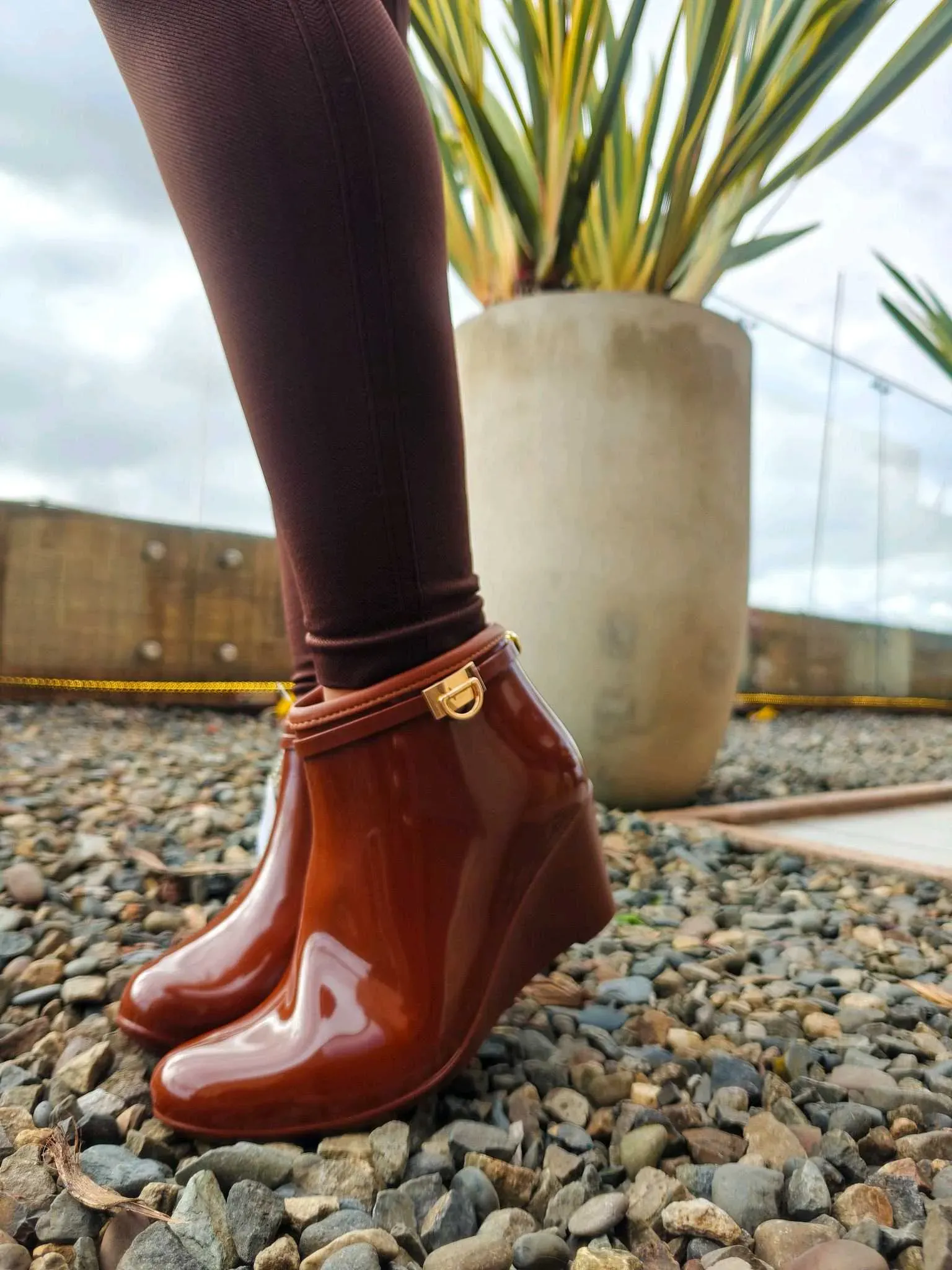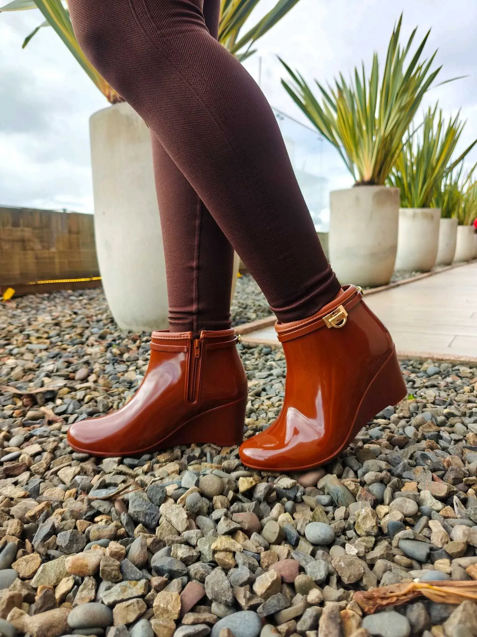 Botin totalmente impermeable, con cremallera para mejor ajuste y plataforma para mayor confort.