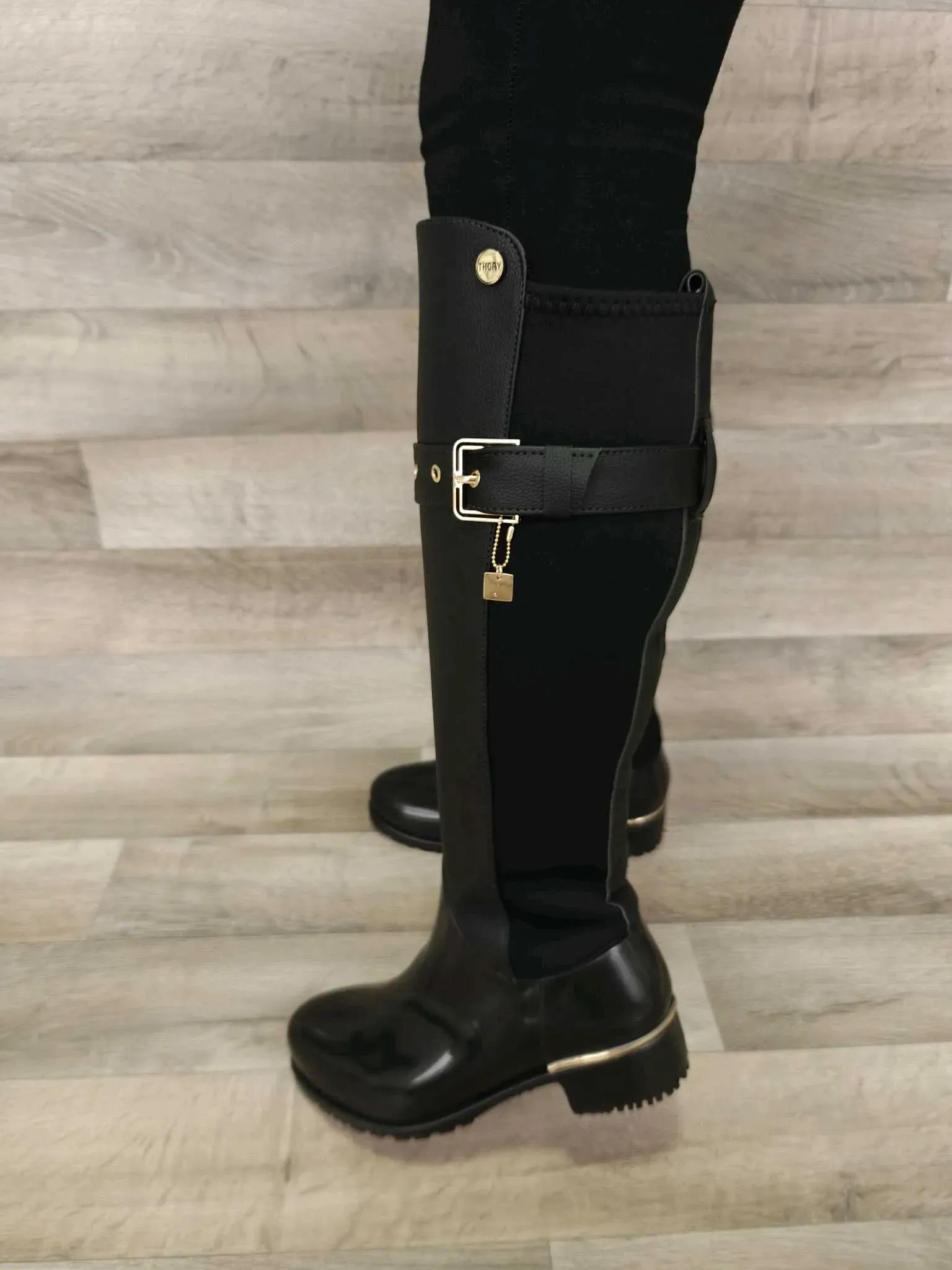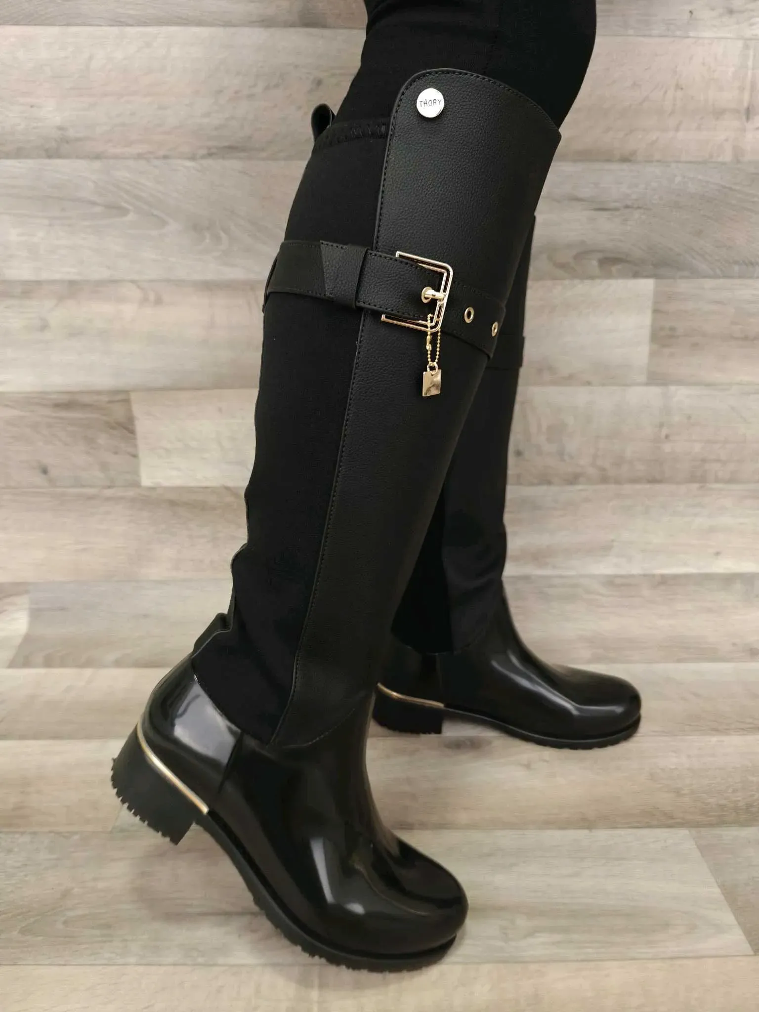 Totalmente clásico, lo vas a amar👢 totalmente impermeable 🌨️ solo en el pie y en la caña mitad neopreno para ajustarse a la medida de tu pierna, sin cremallera y la parte de adelante en poliuretano sintético.