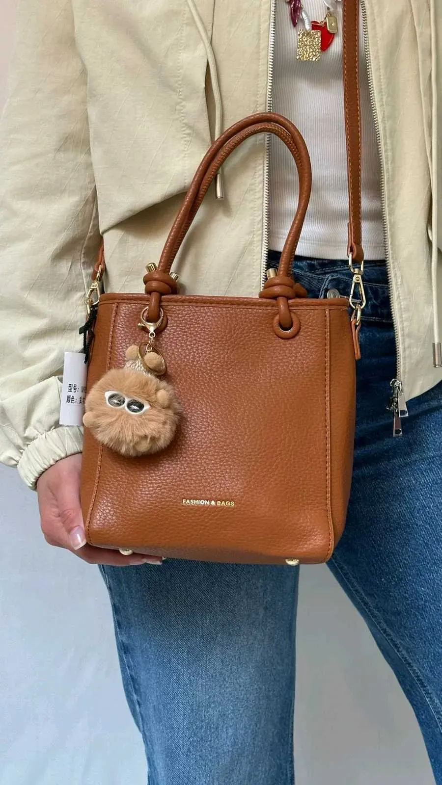 Bolso en poliuretano sintético, trae llavero, con cuerda adicional para terciar y manijas para llevar de mano,con cremallera y terminados en color dorado.